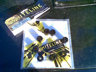 picked up a few parts over the weekend, tie rod spacers,rear swaybar link bushes,gt-r rear sway bar,dmax front widebody guards and a roof spoiler